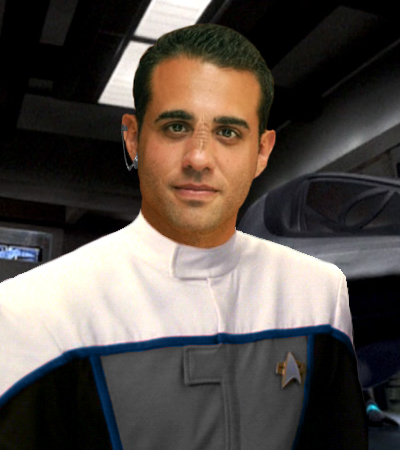 | Physical Description | Palu is a wiry Bajoran with a calm, cool stare behind his murky eyes. They are a rich brown which appear almost black in low light. Black, wavy hair frames his face cut short enough to stay neat. A tight array of ridges add character to his nose. An earring of silver pierces his ear in two places, a long chain dangles between connections and sparkles in the light. He is tall to some, but closer to average height and build. All in all, Lt. JG Vraaku is a fairly unassuming man. There's a confidence in his mannerisms seen in everything from his stride to his facial expressions. Palu takes pride in his uniform and appearance. |