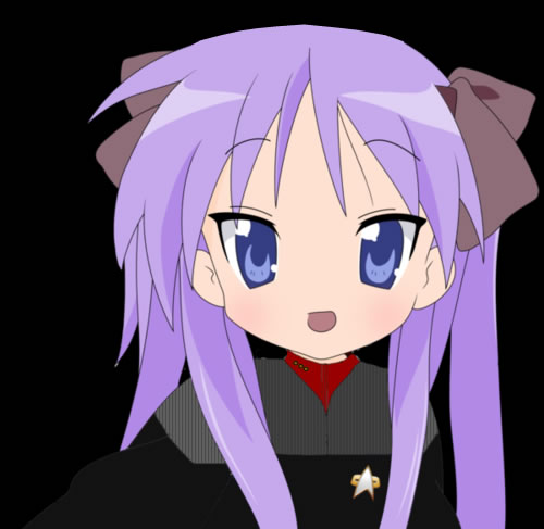 | Personal History | Kagami was born on one Vega Colony, she is the oldest of her set of twins. She was born five minutes before Tsukasa. When she was four years old her family moved from Vega Colony to Earth back to their native country of Japan because their father wanted to be "Closer to their roots and traditions". Kagami, Tsukasa and her mother Airi all have brightly coloured hair due to the genetic manipulations by Airi's grandfather (who was obsessed with Manga and illegally genetically altered his daughter's genes before she was born to change her eye and hair colour) this had passed down to Kagami who's hair is now a light purple naturally. Kagami was the brightest of the two sisters. However she was headstrong and confident in her abilities. Since moving back to Japan she started getting back into Mange and Anime, especially old classics from the 21st Century. Throughout High School she was known for her temper, yet also her athletic ability and her hair style. She was also very interested in Starfleet. When she was fourteen a Lieutenant came to speak to her year group about Starfleet and the Academy. This was just after the start of the Dominion War and when the Federation Citizens didn't know much about it. Kagami kept tracks of the Dominion War through the regular news channels and had decided that she wanted to help. She hated the Dominion after their attack on Earth, especially since she knew that the Federation was only defending theirselves against the Dominion Threat. In 2378 at the age of 15 Kagami secretly took the Starfleet Academy Entrance Exam without telling her parents of her family. She passed the basic Entrance Exam for Security and Tactical after studying for over six months to be accepted. She broke the news on her 16th Birthday, four months before she was due to leave for the Academy. Her Parents were shocked that she had chosen to go into Starfleet especially after Starfleet had been at War. She left at the age of Sixteen to go the Academy in San Francisco. She liked feeling free, not being compared to her sister and to be independant.Kagami had missed out in the Dominion War, yet she still likes to believe she tried to do her best. She began her training in Security and Tactical, her athletic ability gave her a good start to basic training. Her freshman year was mainly getting ready to repel invaders on a ship and she managed to complete basic training. She also passed her medical check and she was cleared to enter the Sophomore Year to start studying how to be a tactical officer. Her Sophomore Year was eventful to say the least. Tsukasa had also entered and had passed the Entrance Exam to be accepted into the Operations department. Kagami found the weapons systems on a starship fascinating and she decided to specialise in Weapons and Tactical, something that Security and Tactical officers had to pick before their Junior Year. In the Junior Year of the Academy Kagami started to undergo special classes in weapons and tactical. She also trained in defensive strategies and self defense. She also joined a class to learn some old style Japanese Martial Arts. Her Senior Year she underwent advanced Tactical and Security Training. She found it challenging but she liked the challenge. After the second semester she had a six hour exam which she got a good ninty three per cent on. She graduated the Academy in 2382 as an Ensign with an above average overall mark. She was immediatly accepted onto the USS Lexington as a ensign security officer. Lieutenant Micheal Moore put a note in her permament record stating: "Kagami is a brilliant officer. She performs well and has always looked for the best in things. She shows compassion and dedication to her job, it is my recommendation that she is promoted to the rank of Lieutenant Junior Grade" In 2384 she was promoted to Lieutenant Junior Grade aboard the Lexington and given the position as Assistant Chief Security/Tactical officer. Kagami was shocked to be this young yet hold an assistant position. However since the loss of so many good officers in Starfleet throughout the Dominion War most Captains were promoting the good officer's earlier to get new fresh blood in senior positions and to try and encourage more people to enlist. In 2387, after serving for five years aboard the Lexington. Captain Riley Butler approached Kagami looking for a new chief of security aboard the USS Misawa, one of Starfleet's new Sovereign Class Starships. Kagami accepted the transfer and bid goodbye to her friends aboard the Lexington. She was promoted to full Lieutenant for the job. She was proud that in six years she had made it upto a chief spot, especially on one of Starfleet's Ship of the Line vessels. When the Misawa visited Earth for two weeks after a year in space Kagami went home to visit her parents. They were very proud of her and she was shocked to find her little sister Tsukasa also home on a leave of absence. Tsukasa had made it to the rank of Lieutenant Junior Grade and was serving as Chief of Operations aboard the USS Tenerife. After bidding her family goodbye again and with more memories and stories she headed back for the Misawa. Life aboard the Misawa was generally normal, however one incident did make it into her permament record. When the Misawa was tasked with hunting down a wanted terrorist Kagami had shown great enthusiasm to catch the man, especially since he had killed thousands in bomb attacks during the Dominion War on several Federation Colonies, including Vega Colony where she was Born. The Misawa managed to capture the man, but he refused to answer any questions from Captain Butler. Kagami asked him if she could interrogate him, but the Butler thought it wasn't the time for it. She was so angry and frustrated with the man that she did it anyway. She got the answer's they were looking for, even if she disobeyed orders and she also discovered that the man had arranged for one of the Misawa's crew to sabotage the ship a