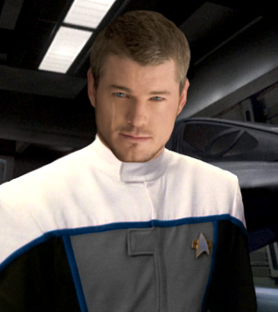 Service Record Unremarkable, except for minor disciplinary action involving a bar fight, and not filing a flight plan for his assignment to the Echidna. Given Starfleet Commendation for Conspicuous Gallantry after defending his wounded wignman in hostile space, ensuring that the Wingman landed safely before landing his own fighter, even though he was low on fuel.