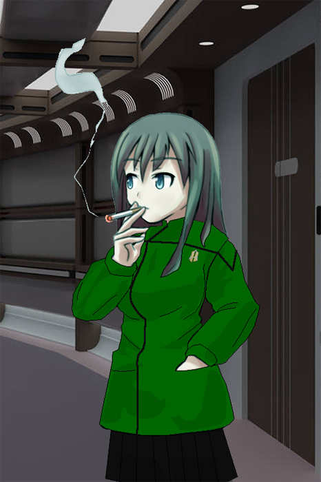 | Personal History | Elizabeth Frederica Beurling, or Liz, as she prefers to be known by, was born in Lac-Megantic, Quebec in 2295 to Gustav Beurling; a Vulcan man whose real name was considered unpronounceable by non-Vulcans (even all possible abbreviations of the name sounded to more rounded ears like unintelligible gargling) and Henrietta Gibbs; a Canadian woman of English descent. Though Liz was the first child of Gustav's marriage to Henrietta, she was the third overall of five children fathered by Gustav. From an early age, there was a rather tense dynamic in the Beurling household, as her two older brothers, who were full Vulcans and furthermore grown adults, though they did well to hide it in their veils of logic, deep down resented their father for divorcing his first wife, their mother, and then marrying a human. When they spoke to their father, it was almost exclusively in Vulcan, and done seemingly deliberately to either anger Liz's mother or belittle the human woman when her back was turned. At first, Liz tolerated the abuse from her brothers, who called her a "meager halfling" as one of their more colorful insults. However, that all changed when her little brother Timothy entered the picture. Liz begged her parents to take her with them to the hospital to avoid the 'care' of her brothers, promising to be a good girl and sit quietly in the waiting room. She was the first one besides her parents and the hospital staff to hold little Timothy in her arms, and when she did, she made a vow to not let Timothy become a victim of her Vulcan brothers' insults like she had been for so long. For Liz's tenth birthday in 2305, she was given her first universal translator by, of all people, her older brother Polak. While Polak shared his older brother, T'Chuus' sentiments concerning his father's second marriage, he was slowly warming up to his human stepmother (unlike T'Chuus) and felt it the logical thing to do in an attempt to make up for past actions he was increasingly viewing as illogical. The translator would allow Liz to listen in on her father and brothers' Vulcan language conversations by providing translations of what they were saying. Furthermore, the device worked both ways, as it would interface with the translators all three Vulcan men carried on them, so if she decided to butt in on the conversation, it would sound to them like she was speaking fluent Vulcan. As a teenager, Liz began to gravitate towards the old Earth subculture of outlaw motorcycle gangs; wearing dark colored (mostly black) clothing, driving fast, loud motorcycles, listening to hard rock and heavy metal, and smoking. It is not known exactly when Liz had her first cigarette, but it's likely she had it sometime when she was in high school, and thanks to an old friend of hers who happened to be related to a tobacco farmer, Liz learned to grow her own tobacco and make her own cigarettes from it. Liz graduated high school in 2313. After which, she applied for, and was accepted into the Universite du Quebec a Montreal. To save money on public transport fares going to and from Montreal and Lac-Megantic, Liz decided to lease an apartment in Montreal and move there. However, not too long after moving out to Montreal, due to the rising costs of real estate in the area due to some Starfleet-related venture in Montreal, her apartment became too expensive for her to afford by herself, so she agreed to co-lease with a roommate. The selected candidate, upon getting to know her half-Vulcan roommate better, revealed that she was friends with a Japanese woman who had married a Vulcan man, just like Liz's mother and father, and that they had recently had a kid together. Liz graduated in 2317, earning her 4 year degree. Liz's parents hoped that she would use this degree to become a professional artist like her father. However, Liz had other plans, as she was hired not too long after graduation by a freight company as a freighter pilot. Liz garnered a reputation among her employer, and the freighter which she served on was often the one her employer called upon whenever they had a client that needed cargo moved 'no questions asked'. 56 years passed Liz by, and by 2373, she had been honored as one of the company's longest-serving employees; an exclusive club that seemed to be inhabited by mostly Vulcans. And things were looking likely to stay that way until the Dominion War broke out, and her freighter, the Maersk Seleya, was requisitioned by Starfleet to become a troop transport to assist in the war effort. The freighter's crew, including Liz, were allowed to remain, but Starfleet personnel would be stationed on the vessel to coordinate troop movements, and nowhere was this more evident than in who they were transporting: Starfleet marines. Liz developed an admiration for the folks in the green Starfleet uniforms, and following the conclusion of the war in 2375, when the Seleya was returned to Maersk, Liz retired from the company and showed up to Starfleet to enlist in the marine corps as an officer. After having undergone all of the necessary officer training, Liz was assigned to the original USS Redemption as a part of its rather small marine compliment at the rank of 2nd Lieutenant. During her service on board the Redemption, Liz met a security officer named Tatsuo Shimada. The two of them hit it off, and for the first time, Liz realized that she had feelings for Tatsuo that went beyond friendship. However, when she confessed to him, she was shut down by him, for Tatsuo was already seeing another woman named Chiyo Mabuchi. Though she was devastated, Liz respected Tatsuo's relationship, and pressed the issue no further. Instead, she began looking for transfers. However, there wasn't much need for a marine officer, and her search was delayed until 2381, when she finally had a transfer request approved, and she was reassigned to the USS Kanzaki's marine detachment. As it turned out, Liz's transfer came with silver lining, for 