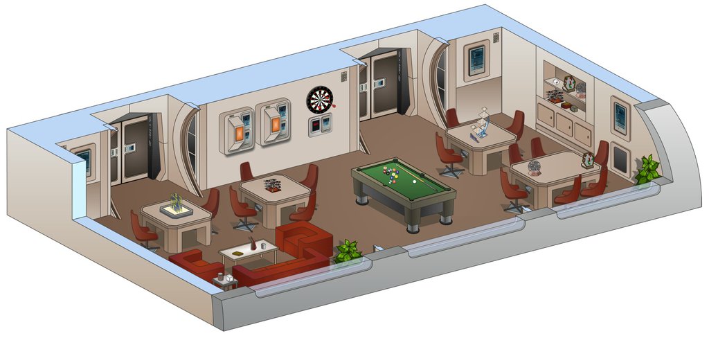 The recreation room is a series of small rooms designed for recreation and relaxation.